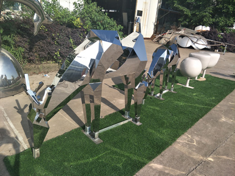 3、 不鏽鋼雕塑本身的顔色銀白色,具有光澤。表面可以鏡面抛光效果和拉絲亞光效果,也可根據需求爲雕塑上不同的顔色,一般爲金屬漆。